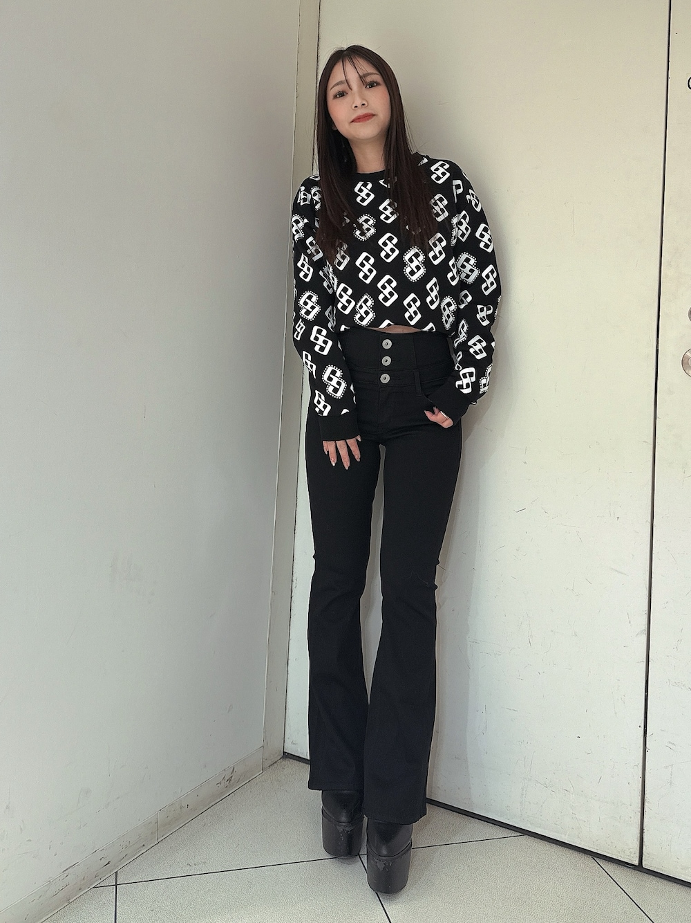 arisa(GYDA)のデニムパンツ「NEWハイウエストBACKクロスフレアパンツ」を使ったコーディネート