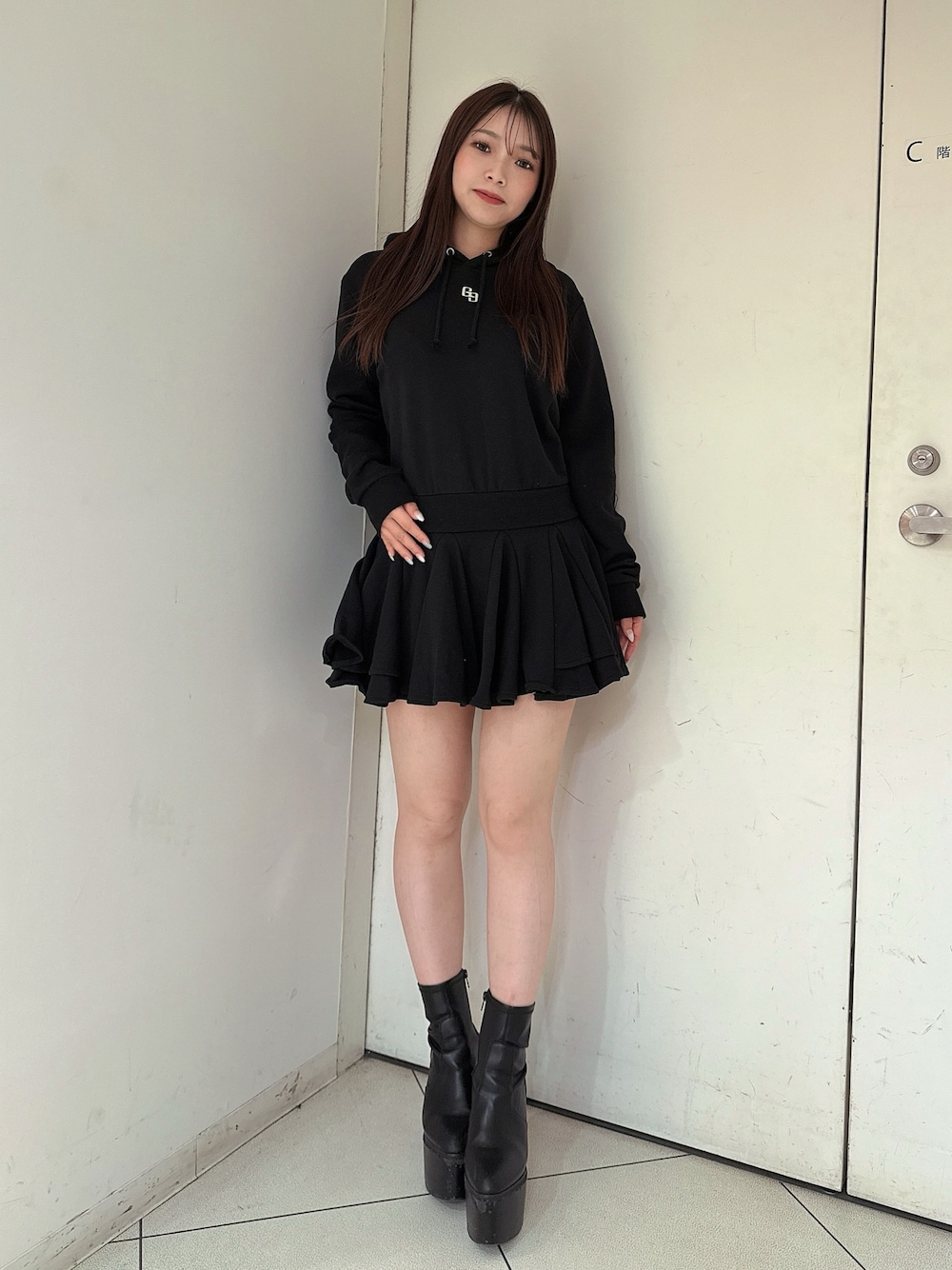 【ワンピース】 フード付きのスウェットワンピースです。フレアシルエットで可愛い印象になりますがスウェット素材なのでカジュアルな雰囲気でご着用いただけます。厚底スニーカーコーデにキャップ合わせもおすすめです! 【ブーツ】 毎年人気のシンプルな厚底ブーツです。 シンプルなデザインなのでどんなコーデにも合わせやすく厚底なので歩きやすいです。23.5センチMサイズ着用