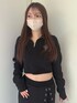 arisa(GYDA)のスウェット「sacred edge crossハーフZIPショートスウェットトップス」を使ったコーディネート