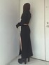 【トップス】 ハーフジップのスウェットトップスです。セットアップ着用はもちろん、ショート丈なのでハイウエストデニムやスカート合わせもオススメです。 【スカート】 深めのスリット入りのロングスカートです。中がパンツになっているので安心して着用いただけます。 【ブーツ】 毎年人気のシンプルな厚底ブーツです。 シンプルなデザインなのでどんなコーデにも合わせやすく厚底なので歩きやすいです。23.5センチMサイズ着用