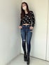 【トップス】 GGロゴがたくさん入っている薄手のニットトップスです。タイトシルエットなのでフレアパンツやワイドデニムあわせもおすすめです。 【デニム】 大人気のSIDE RIPPEDスキニーデニムにハイウエストが登場しました♡ ウエスト位置が高くなるため履きやすく、より足長効果も期待できます!国産デニムなので長くご愛用いただけます。155センチSサイズ着用。 【ブーツ】 毎年人気のシンプルな厚底ブーツです。 シンプルなデザインなのでどんなコーデにも合わせやすく厚底なので歩きやすいです。23.5センチMサイズ着用