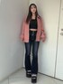 【ブルゾン】 後ろにビジューでデザインの入っているオーバーサイズのレザージャケットです。 デニム合わせはもちろんオーバーサイズなのでミニスカートやショーパン合わせもおすすめです。 春・秋にちょうどいいレザージャケットです。 【デニム】 ウエストクロスデニムシリーズのフレアデニムです。程よいフレアの形なので足長効果抜群です。丈も長すぎないので低身長の方もスニーカー合わせで履けます。155センチSサイズ着用 【サンダル】 去年大人気だった厚底サンダルにビジューがついて再登場です♡ 厚底で歩きやくす疲れにくい作りになっており春夏大活躍するアイテムです!23.5センチMサイズ着用。