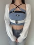 【ボレロ】 フロントにGGロゴの金具付きのボレロです。インナーにビスチェをレイヤード着用がおすすめです。シンプルなワンピに羽織るのもおすすめです! 【ビスチェ】 フロントクロスデザインのビスチェです。胸元のフェイクレザーベルトは取り外しなのでいろんな着回しコーデができる1枚です。 【デニム】 シンプルなベーシックデザインのフレアデニムです。足長効果のあるフレアデニムなので低身長さんにもオススメ。155センチSサイズ着用。 【サンダル】 去年大人気だった厚底サンダルにビジューがついて再登場です♡ 厚底で歩きやくす疲れにくい作りになっており春夏大活躍するアイテムです!23.5センチMサイズ着用。