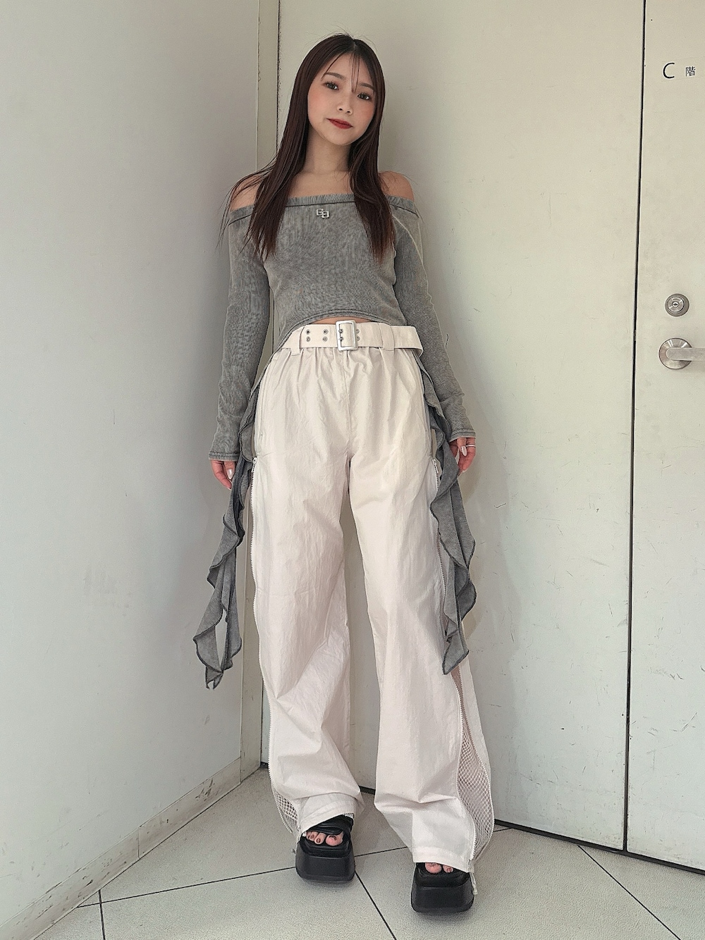arisa(GYDA)のその他パンツ「SIDE ZIPメッシュスリットワイドパンツ」を使ったコーディネート
