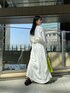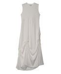 【トップス】ショート丈でスタイルアップ効果抜群のトップス。異素材ドッキングでベースは伸縮性があり少しツルッとしたカットソー素材で、下部分はツヤ感があるシャカシャカした素材です。素材感でカジュアルに見えすぎず、モードにお召しいただけるようになっております。 【ワンピース】一言で言うと細見えワンピースです!切り替えラインがカーブになっており、横幅の軽減と身長高見え効果◎見頃との切り替え位置がウエストラインより少し高めで、足長効果も抜群です。裏地あり。
