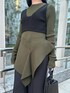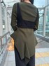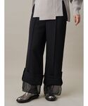 【キャミソール】バスト下に付いているボタンでビスチェとベアトップに分けられる3WAYのニットアイテム。1枚でそのままでも着て頂けるデザインですが、それぞれブラウスやTシャツなどにレイヤードしやすいアイテムなので様々な着こなしを楽しめる贅沢なアイテムです☺︎伸縮性抜群で柔らかいニット素材で着心地の良い一枚です。 【ニット】アシンメトリーにリブパーツをドッキングしたデザインニット。程よいハリ感とドレープ感のあるペプラムデザインで女性らしいシルエットに。タイトボトムにもボリュームボトムにも合わせやすいデザインです◎ 素材はシャリ感のある柔らかいニットでサラッとした着心地です。 【パンツ】裾を折り返すと透け感のあるシアーな素材がレイヤードされているデザインパンツ。 折り返した状態だと、足回りにシアー部分が来るので、しっかり長めの着丈でありながらも抜け感が出て軽い印象に。折り返しても伸ばしてもシーンに合わせてお好みで着て頂ける2WAY仕様。落ち感のある素材感で、オケージョンからカジュアルまで幅広いシーンでお使いいただけます◎