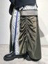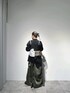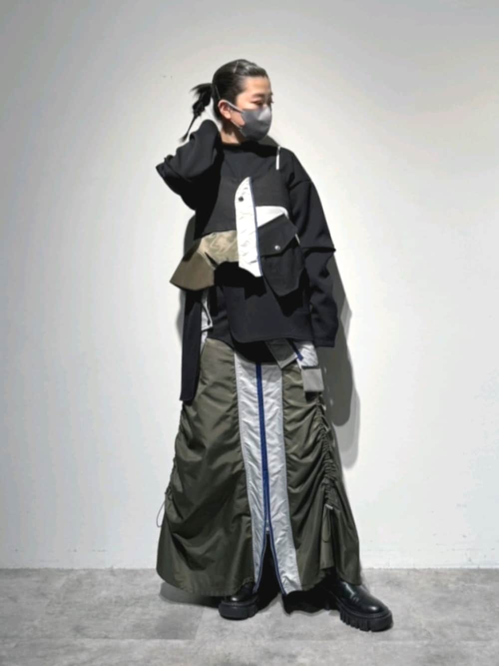 【トップス】 全体的にコクーンなシルエットにすることでボトムとのバランスが取りやすく、深く入ったカーブラインのスリットがボトムスのデザインをゆりきれいにみせてくれます。 柔らかくもハリ感のあるダンボール素材を使用し、ハイネックにすることでモードな印象に◎ 【ビスチェ】 UN3D.らしいトレンチとMA-1を大胆にドッキングさせたデザインキャミソール。 アシンメトリーなポケットデザインや配色使いなど、1枚でインパクトのあるコートになっています。インナーにはシンプルなスタイリングがオススメです。 【スカート】 UN3D.らしいトレンチとMA-1を大胆にドッキングさせたデザインスカート。 アシンメトリーなポケットデザインや配色使いなどインパクトのあるデザインです。フロントにあるZIPやギャザーでお好みのシルエットに調節していただけます。腰周りにデザインがあるのでコンパクトなトップスとのスタイリングがおすすめです。