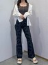 [トップス]程よいフィット感でボディラインを拾いすぎないシルエットになっています!インナーとしてはもちろん、1枚で着ても映えます◎ [シャツ]165㎝の私でお尻にかかるくらいの丈間です!程よい透け感で、日焼け対策や冷房対策としても着用して頂けます◎ [デニム]身長165㎝でMサイズの丈間が足首隠れて丁度良いです!デザイン性がありスタイリングのアクセントになるアイテムです☺︎ [シューズ]24.5㎝でLサイズ着用してます! フラットな厚底で履きやすさ抜群です!◎