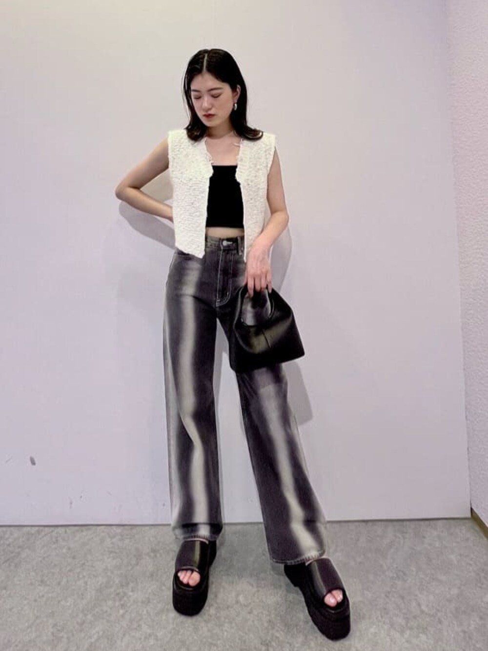 トレンドのカジュアル×モードコーデ♡ [インナー]カップ付きでフィット感があり、ハイウエストのボトムと合わせてもお腹チラ見えする丈間です! [ベスト]夏場でもサラッと着て頂けるニット素材です!トップス/ベストの2wayで使用できます! [ボトムス]身長165㎝でMサイズ着用してます! 厚底合わせで丁度いい丈間で、スニーカー合わせだとルーズに着用できる丈間です! [シューズ]普段24.5㎝でLサイズ着用してます!横幅に少し余裕があります!