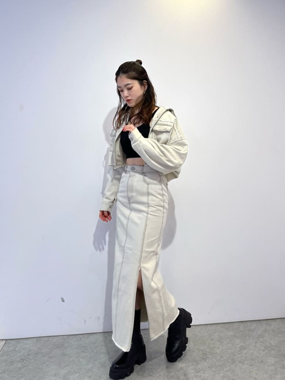 片岡玲菜(EMODA)のデニムジャケット「オーバーショートシャツジャケット」を使ったコーディネート
