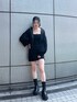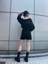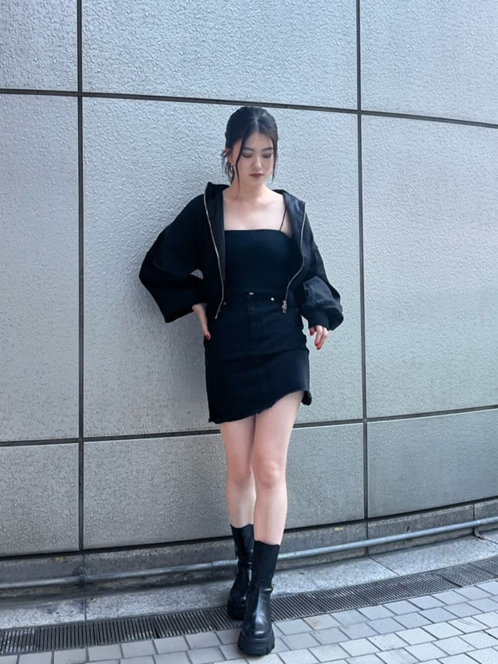 「ブラックコーデ」 [アウター]ショート丈でおへそくらいの丈間です!軽い素材感なので重さなども気にならず楽に着て頂けます! [スカート]身長165㎝でSサイズ着用しています!太ももの真ん中より少し上の丈間でした! [シューズ]普段24.5㎝でLサイズ着用しています!