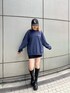 「ストリートコーデ」 [トップス]EMODA×Russellのコラボアイテムです!身長165㎝でお尻が隠れる丈間です! [スカート]Sサイズ着用しています!インナーショーツ付きです! [ブーツ]普段24.5㎝でLサイズ着用しています!