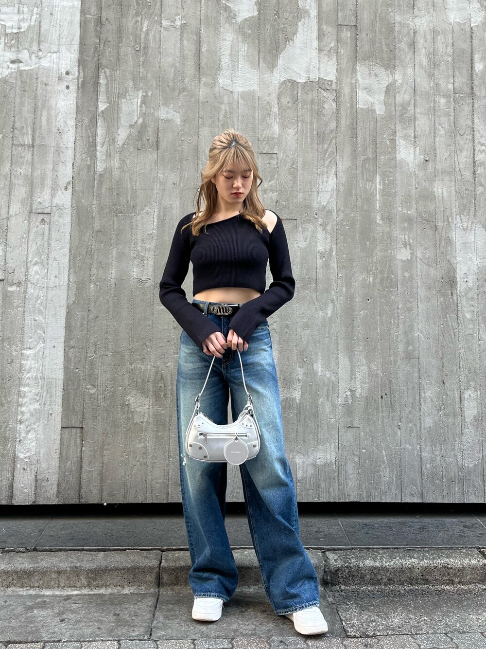 『春の海外風コーデ』 [トップス]おへそより上のショート丈です!程よいフィット感でボディラインを綺麗に見せてくれます! [デニム]身長165㎝でSサイズ着用しています!スニーカー合わせでも地面につかない丈間でした! [バック]500mlのペットボトルが横に入る大きさです! [ベルト]EMODAオリジナルロゴのバックルが可愛いです!コーデのアクセントになるアイテムです❤︎