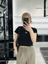 『大人海外風コーデ☺︎』 [トップス]おへそが見えるくらいのショート丈です!EMODAオリジナルのロゴが刺繍されています♡ [パンツ]身長165㎝でSサイズ着用しています!スニーカー合わせでも地面につかない丈間でした! [バック]500㎖のペットボトルが横に入る大きさです!
