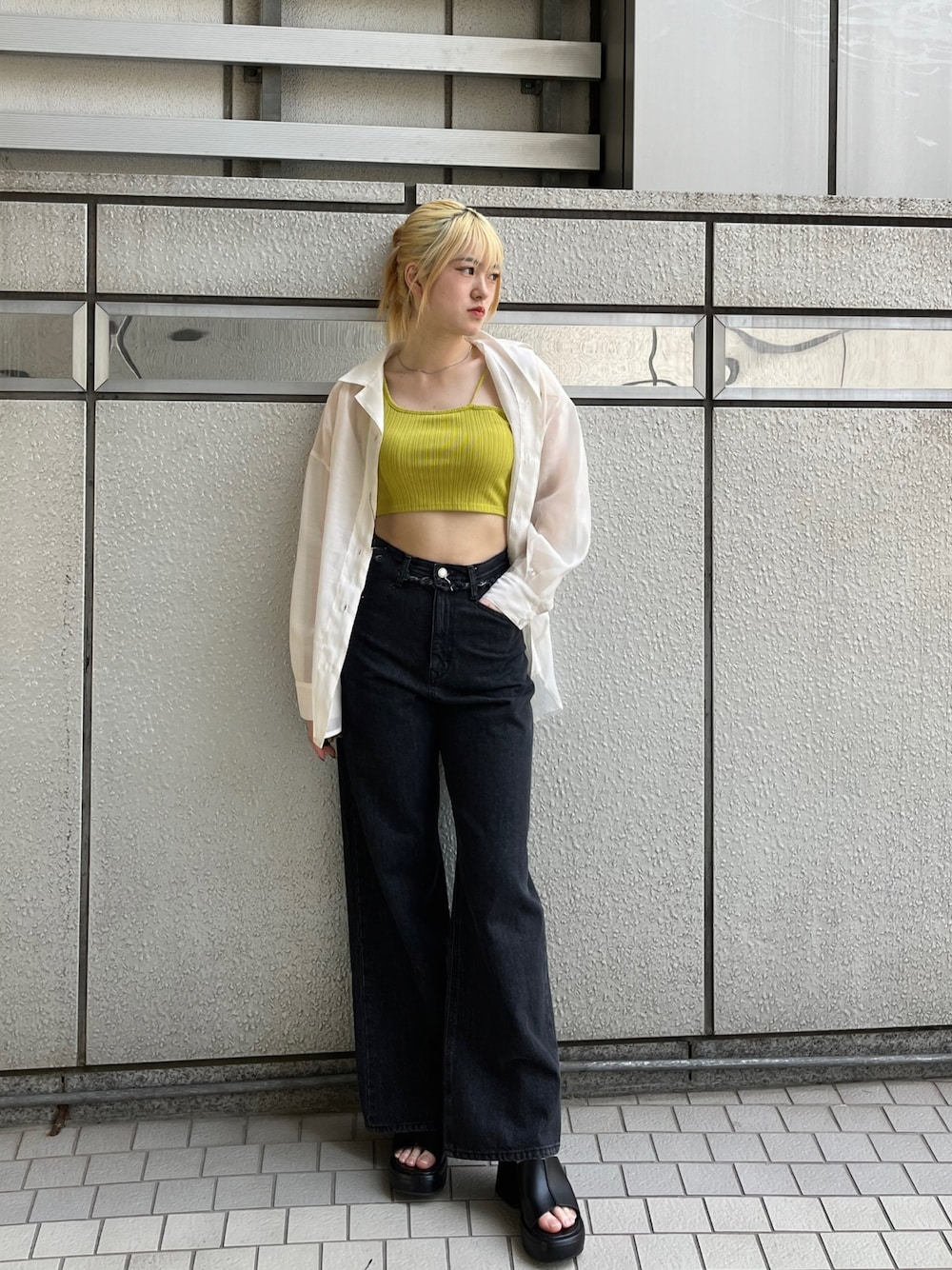 片岡玲菜(EMODA)のデニムパンツ「【SET UP着用可能】ベルトフリンジジャストウエストジーンズ」を使ったコーディネート