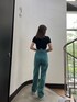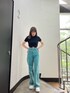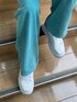 『カジュアルカラーコーデ』 [トップス]おへそ上のショート丈です!トレンドのロゴテープのデザインがコーデのアクセントになります! [デニム]身長165㎝でSサイズ着用しています!スニーカー合わせで地面につかない丈間です! [スニーカー]厚底のデザインになっています!