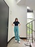 片岡玲菜(EMODA)のデニムパンツ「カラーバギージーンズ」を使ったコーディネート