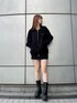 『ブラックコーデ❤︎』 [ブルゾン]お尻が隠れるくらいのオーバーサイズです!裾はゴム入りなので丸みのあるシルエットになります! [スカート]身長165㎝でSサイズ着用しています!インナーショーツ付きなので1枚で着用できます! [ブーツ]普段24.5㎝でLサイズ着用しています!