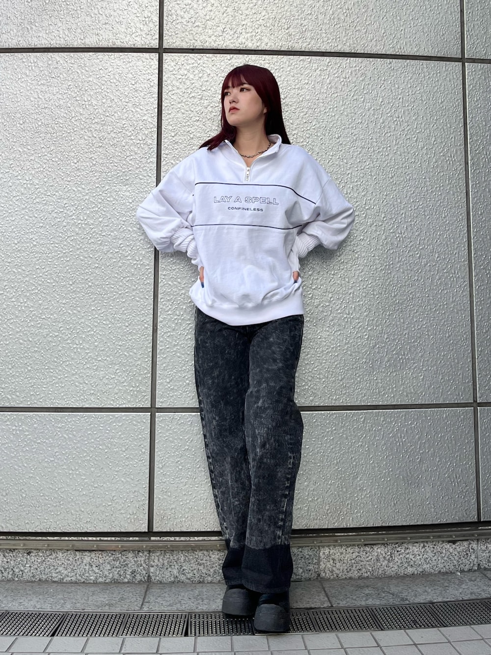 片岡玲菜(EMODA)のスウェット「アームウォーマージップスウェット」を使ったコーディネート