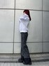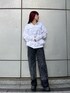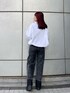 『モノトーンコーデ🤍🖤』 [トップス]袖口のアームウォーマーデザインがポイントです!オーバーサイズでミニ丈のボトムス合わせでも可愛いです! [デニム]身長165㎝でSサイズ着用しています!裾がツートーンになっていて、ロールアップしての着用も可能です! [シューズ]普段24.5㎝でLサイズ着用しています!