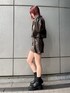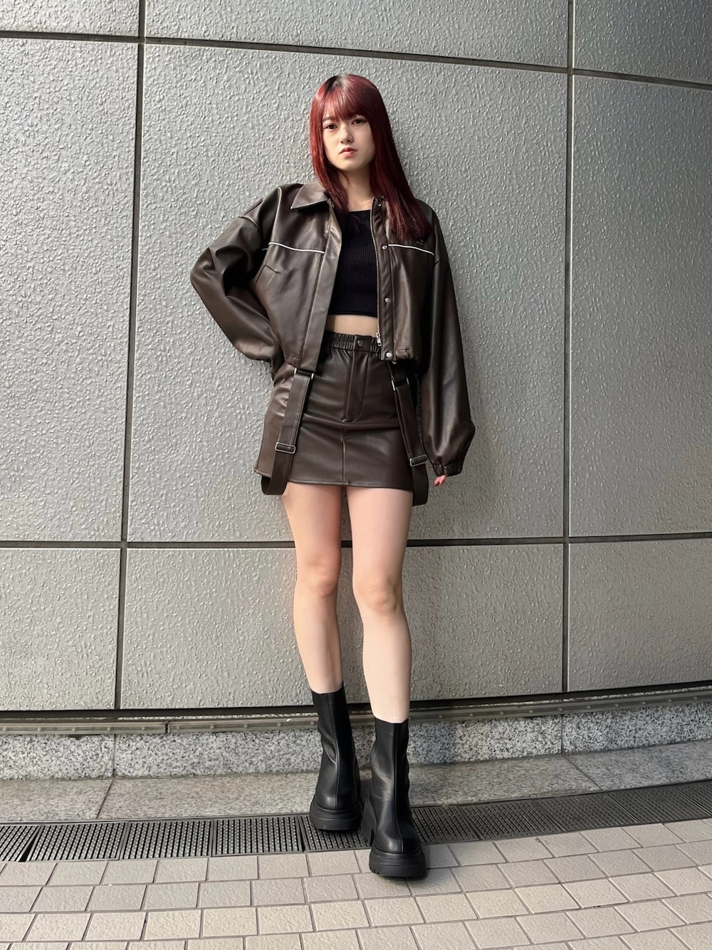 『セットアップコーデ』 [ブルゾン]袖周りがゆったりなシルエットで、インナーを着込めて長いシーズン着用できます! [トップス]カットオフデザインがポイントです!ボディラインを拾いすぎないシルエットです! [スカート]インナーショーツ付きなので1枚で着用できます!サスペンダーは取り外し可能です! [ブーツ]普段24.5㎝でLサイズ着用しています!