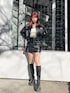 『セットアップコーデ』 [アウター]おへそが隠れるくらいのショート丈です!パイピングデザインがポイントです! [トップス]ボディラインを拾いすぎないタイトシルエットです! [スカート]身長165㎝でSサイズ着用しています!サスペンダーは取り外し可能です! [ブーツ]普段24.5㎝でLサイズ着用しています!