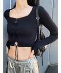 片岡玲菜(EMODA)のニット/セーター「フロントレースフィットニット」を使ったコーディネート