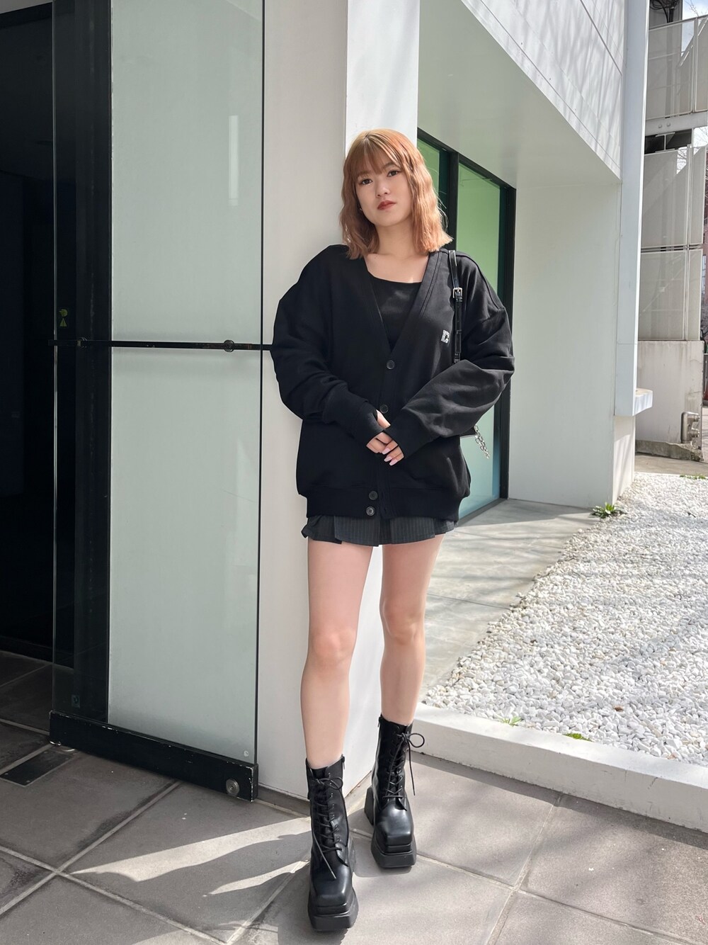 『ワントーンコーデ』 [カーディガン]お尻が隠れるくらいのオーバーサイズです!シンプルなデザインですが、胸元のワンポイントがアクセントになっています! [インナー]カップ付きなので下着無しで着用できます! [スカート]身長165㎝でSサイズ着用しています!インナーショーツ付きなので1枚で着用できます! [ブーツ]普段24.5㎝でLサイズ着用しています!