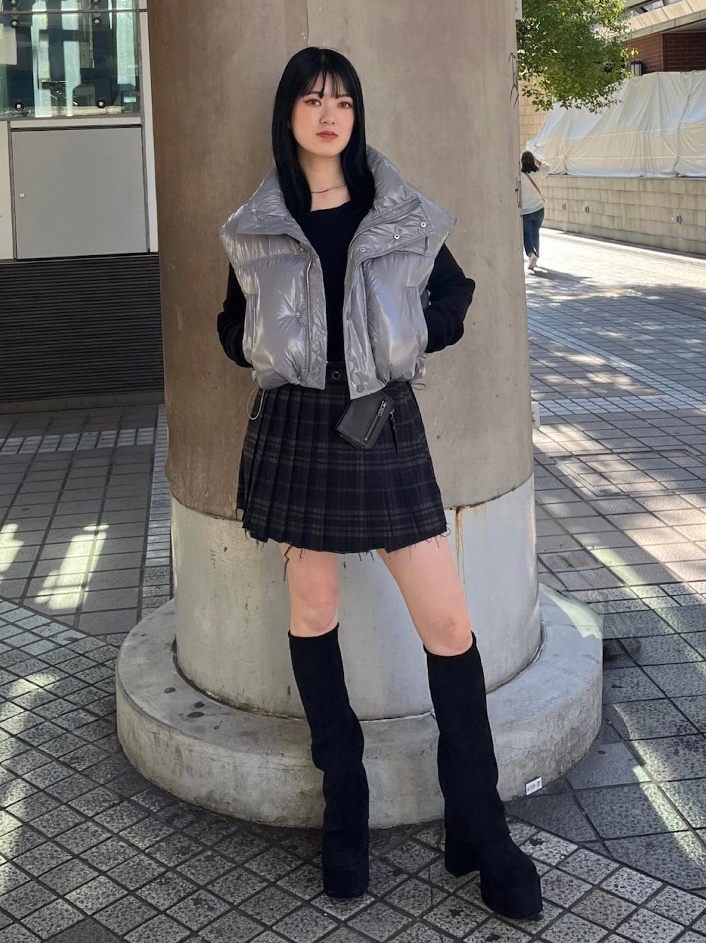 『y2kコーデ』 [アウター] おへそが隠れるくらいのショート丈です! 光沢感のある素材が今季らしいデザインになっています! [トップス] おへそ上のショート丈です! オフショルでも使える2WAY仕様です! 袖口のアームフォーマーデザインがポイントです! [スカート] 身長165㎝でSサイズ着用しています! 裾のカットオフデザインがポイントです! [ベルト] ポーチ付きのベルトでコーデのアクセントになります! [ブーツ] 普段24.5㎝でLサイズ着用しています!