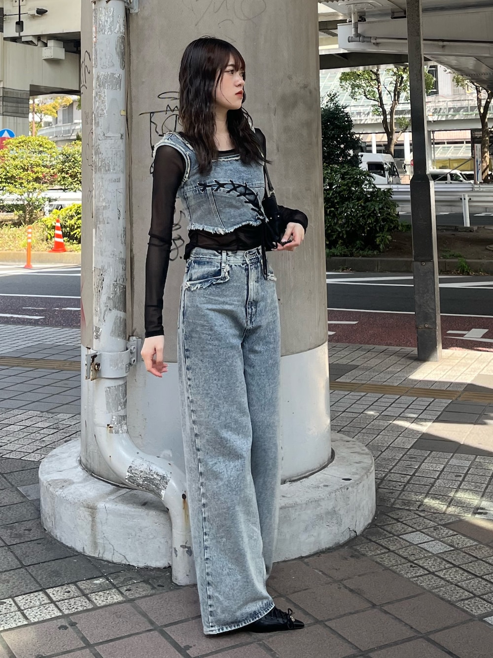 片岡玲菜(EMODA)のパンプス「レースアップリボンパンプス」を使ったコーディネート