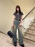 片岡玲菜(EMODA)のデニムパンツ「ヴィンテージシェードルーズジーンズ」を使ったコーディネート