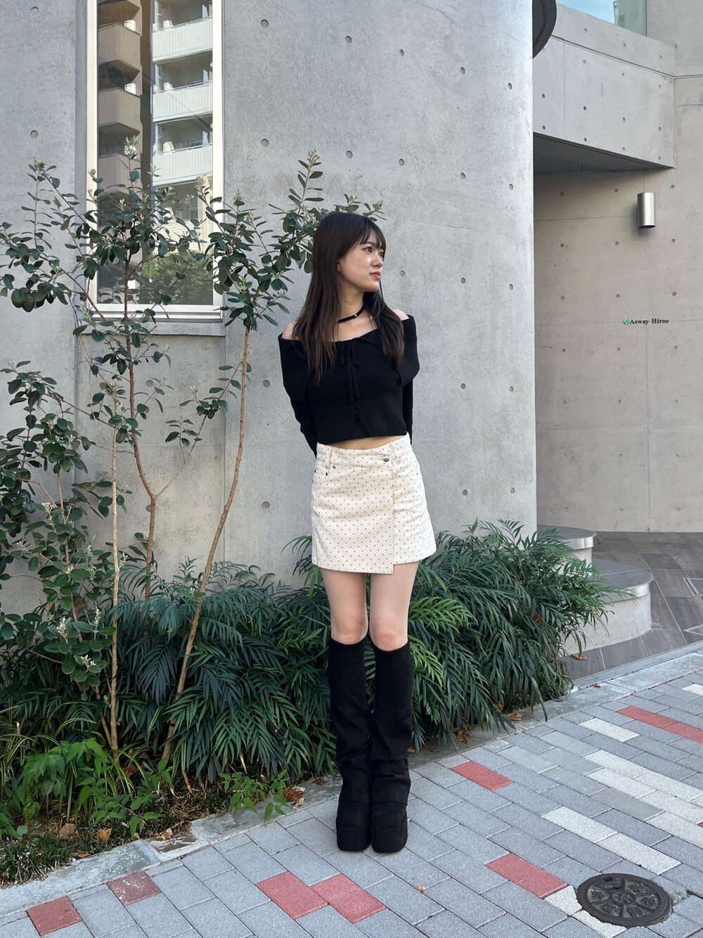 片岡玲菜(EMODA)のスカート「アシンメトリーラップスカート」を使ったコーディネート