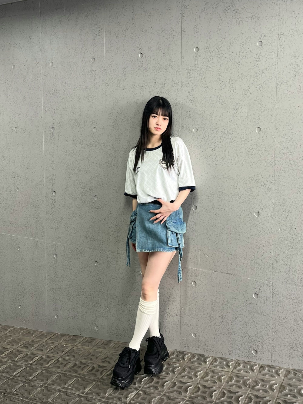 [トップス] お尻が隠れるオーバーサイズです! ユニフォームデザインがかわいいです♡ [ボトム] 身長165㎝でSサイズ着用しています! [シューズ] 普段24.5㎝でLサイズ着用しています!