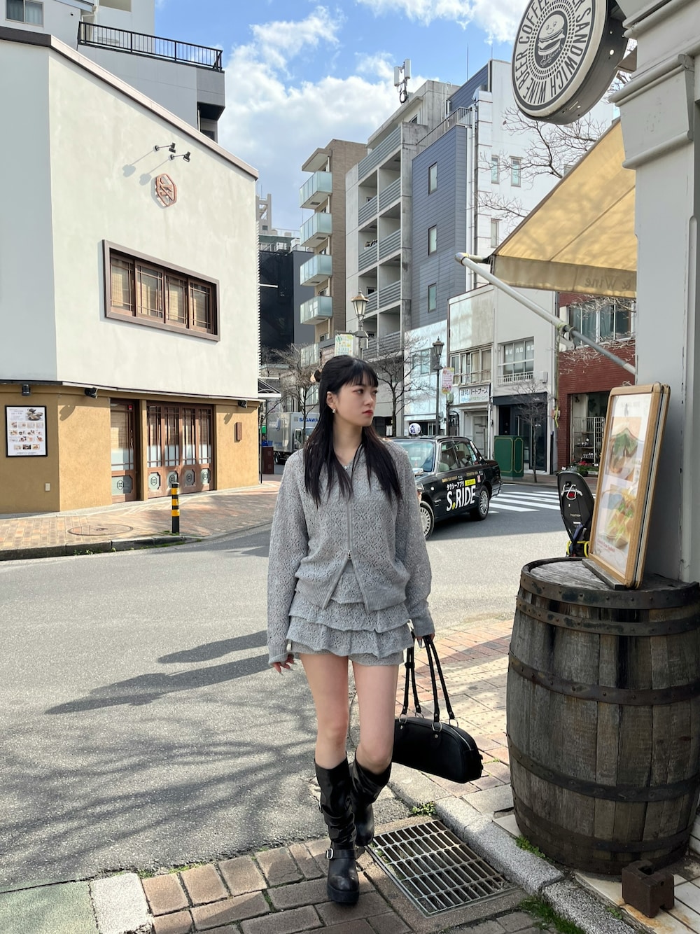 [トップス] お尻にかかるくらいの丈感です! ダブルジップのデザインで抜け感のあるアイテムです! [スカート] インナーショーツ付きなので 一枚で着用できます! [ブーツ] 普段24.5㎝でLサイズ着用しています! [バック] 500mlのペットボトルが入る大きさです!