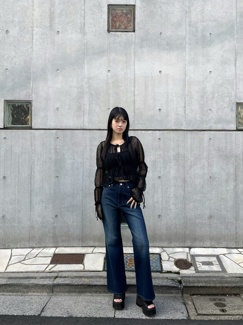 [トップス] 立体感のあるシルエットがポイントです! 羽織としても使えて着回し抜群です! [デニム] 身長165㎝でSサイズ着用しています! [サンダル] 普段24.5㎝でLサイズ着用しています!