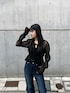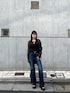 片岡玲菜(EMODA)のデニムパンツ「ミニマルジャストウエストフレアデニム」を使ったコーディネート