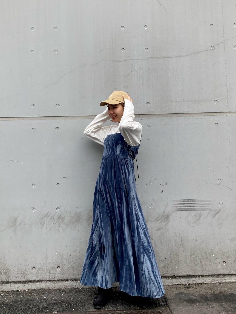 神田愛結(Ungrid)のワンピース「ベロアギャザーキャミワンピース」を使ったコーディネート