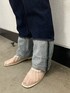 春らしい色使いのコーディネート🐝 抜け感がでるようにシャツの裾は留めずに着ています◎ デニムは井桁弘恵さんコラボの商品✨️ 自分で折り返しを調節できるので身長に合わせて頂けます☺️☺️私はあえて太めに折り返してズルっと履いてみました! 折り返した部分はステッチがカラーになっていてUngridには普段ない、特別感のあるデニムとなっています💮 シルエットは少し細身のストレートです🙌