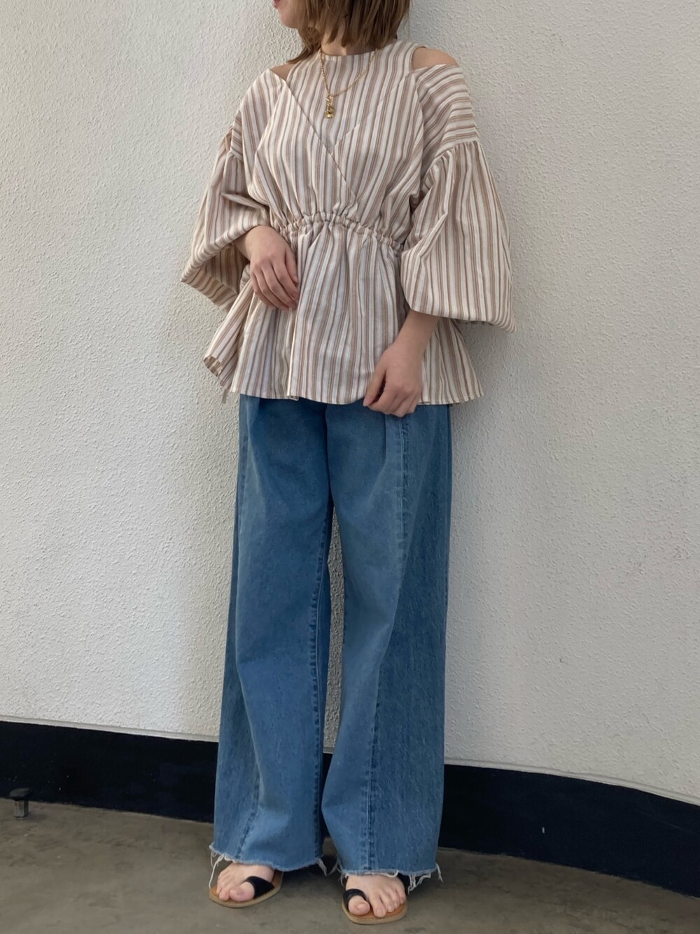 神田愛結(Ungrid)のシャツ/ブラウス「レイヤードデザインボリュームブラウス」を使ったコーディネート