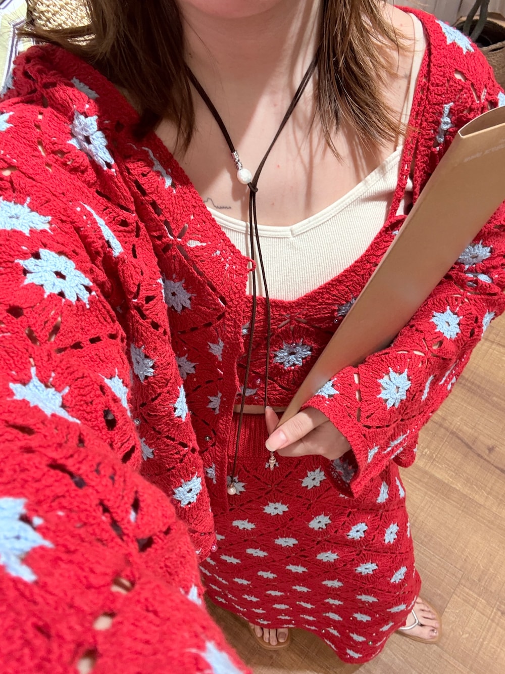 展示会で人気だったサマーニットセット🌞 よく見ると、カーデとスカートは裾、ビスチェは前面にビーズが付いていて映えます◎ セットで着るのはもちろん、それぞれバラバラで合わせてもコーディネートのポイントになるので、簡単にオシャレできます✨✨