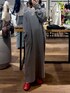 グレーのゆったりワンピースは首元は空いているので程よく女性らしい印象なのが可愛い◎ ポケット付きで実用性もあります✨️ アクセントにパキッとした赤のシューズを合わせてみました❤️
