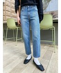 【Tシャツ】このTシャツ着ればおしゃれ見え間違いなし!!!大きめサイズなのでゆったり着て頂けます!小柄さんはインして着たり、サイドで結んでも可愛いですよ!高身長さんはアウトで着て頂いてもこなれ感でます! Tシャツは薄めの生地感なので、夏でも涼しく着れていいですよね! 夏にカラーTシャツと聞くと、汗が目立つか不安になると思いますが、脇周りもゆったりしてるので安心して着て頂けます! 【デニム】細見えデニム! いい意味で足のラインをあまり拾わないので、私は膝下O脚なのですが綺麗に履けました! 152cmで24インチ履きましたが、くるぶしにかかる程度の丈感でしたよ〜! ブーツ合わせでも綺麗に履いて頂ける丈なので、このデニム持っていれば一年中履き回せますね!!持っていて損なしデニムです!