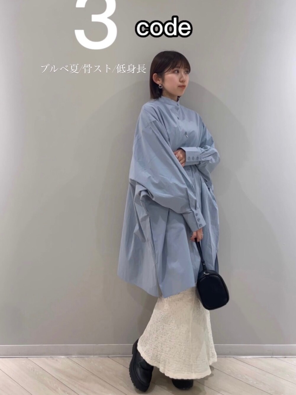 【Instagram 】@shion_tada_ リール詳細❤ blue×white コーデ3選! 【シャツ】 152センチで膝上くらいの丈感です! シャツワンピ風に着ても可愛いです😍 ルーズではありますが、小柄さんでもスッキリ着れるようなシルエット感です! 【スカート】ジャガード素材で表面ポコポコ感あります🥰スウェットやTシャツ合わせがオススメです! 伸縮性もあり、裏地付きなので透け感ありませんでした! 【バック】シンプルなデザインが可愛い! 持ち手部分は華奢なので大人な感じで使えます🌿