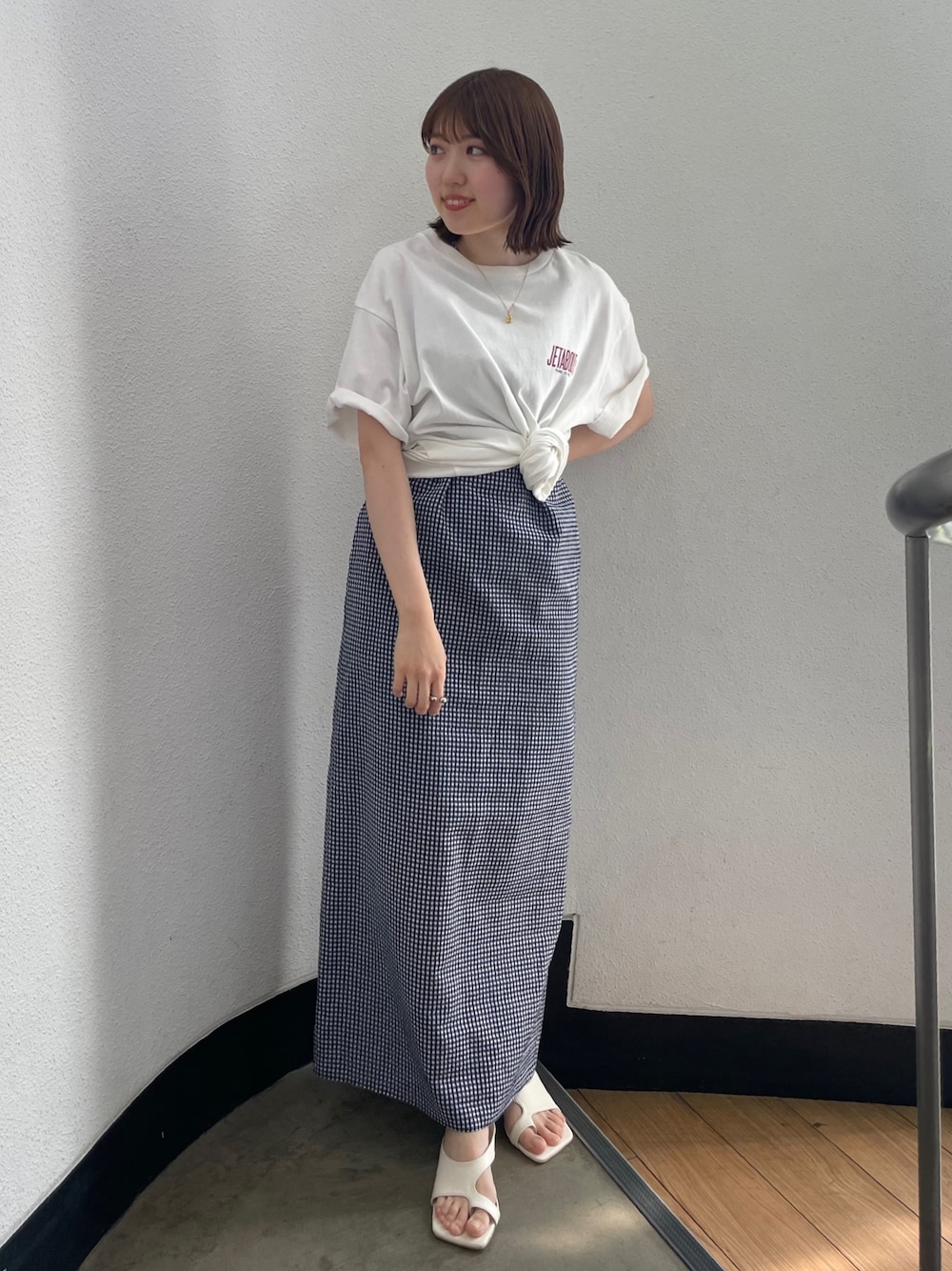 ワンピ着回し🫐 《IG: @shion_tada_の投稿詳細》 【ワンピース】 着るだけでトレンド感出まくり!ギンガムチェックワンピ☺️🫶🏻 紐の部分で長さの調節も出来るので、152センチの私でも地面に擦らず着れました! 小柄さんはフラットシューズですと、ぎりぎりついてしまうかもしれません! 厚底スニーカーやサンダルをおすすめします! ワンピ自体はサラッとしていて、落ち感もあるのでスッキリ着れます! 【Tシャツ】袖部分ゆったりしているので、こなれ感出せます!配色も可愛いですよね❤ 丈感は152センチで結ばずに着るとお尻隠れる程度です! 【サンダル】Sサイズ着用。 アシメデザインがトレンド感あって可愛い!靴擦れもしにくく履きやすかったです!足幅がある私でも窮屈感なく履けました✨ 【ネックレス】シルバー925に金メッキコーティングなので長持ちします○ シンプルなコーデにプラスするだけで、トレンド感も増します!! 長さは胸の辺りまでです!