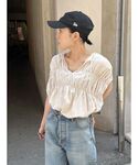 多田詩音(Ungrid)のシャツ/ブラウス「リネン混ギャザーノースリブラウス」を使ったコーディネート