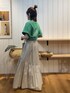 楽ちんコーデ🫛 《IG: @shion_tada_の投稿詳細》 【Tシャツ】ベーグルの絵が描いてある遊び心あるTシャツ👕袖部分はゆったりしていて、脇周りもピタッとしてないので脇汗も気にせずに着れちゃいますよ!!🤣🤍丈はお尻隠れるくらいです! 【スカート】定番のギャザースカート❤おしゃれ見え間違いなし!! 前後のギャザーの位置が違うので、お尻の部分が膨らんで見えません! 丈感は152センチでくるぶしあたりでした! 【バック】涼しげなペーパー編みバック!ものも沢山入ります! ※スニーカーはスタッフ私物