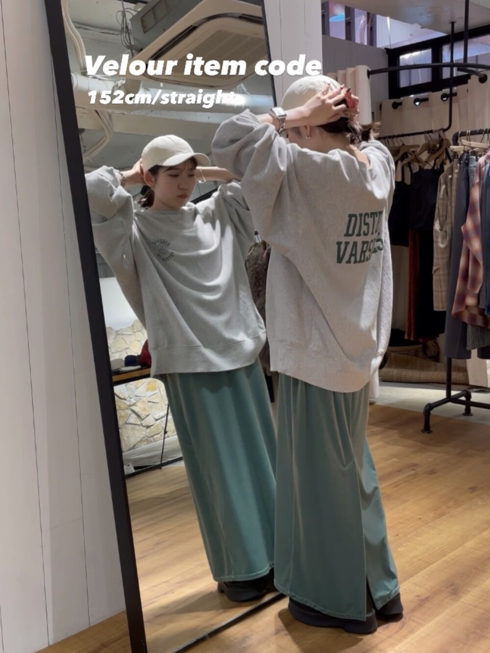 ベロアアイテムコーデ❤ Instagram【@shion_tada_】リール詳細♡ 【ワンピ】 見た目からもうお洒落なベロアワンピ✨ 程よくフィットしてくれるのですが、骨盤から下は、真下に落ちてくれるようなシルエットなので、足のラインはあまり拾わないです! 骨格ストレートの私でもすっきり着れました🫶🏻 丈感は152センチでスニーカー合わせで地面にぎりぎり擦らない程度だったので、小柄さんはサンダルやブーツ合わせもおすすめです❤ 【スウェット】 ビッグシルエットが可愛いスウェット❤️ 袖部分もたぽっと感あって、袖まくりしてもシルエットが可愛く見えるようになってます😘 丈感は152センチでお尻隠れる長さです! 【ブーツ】去年も出ていた大人気ブーツ! 足幅広めの私でも窮屈感なく履けました✨ ソールは4センチあるのですが、長時間履いていても疲れを感じにくいです🩵 【キャップ】シンプルなロゴが可愛いキャップ✨🧢後ろのアジャスターの部分で大きさも変えて頂けます!