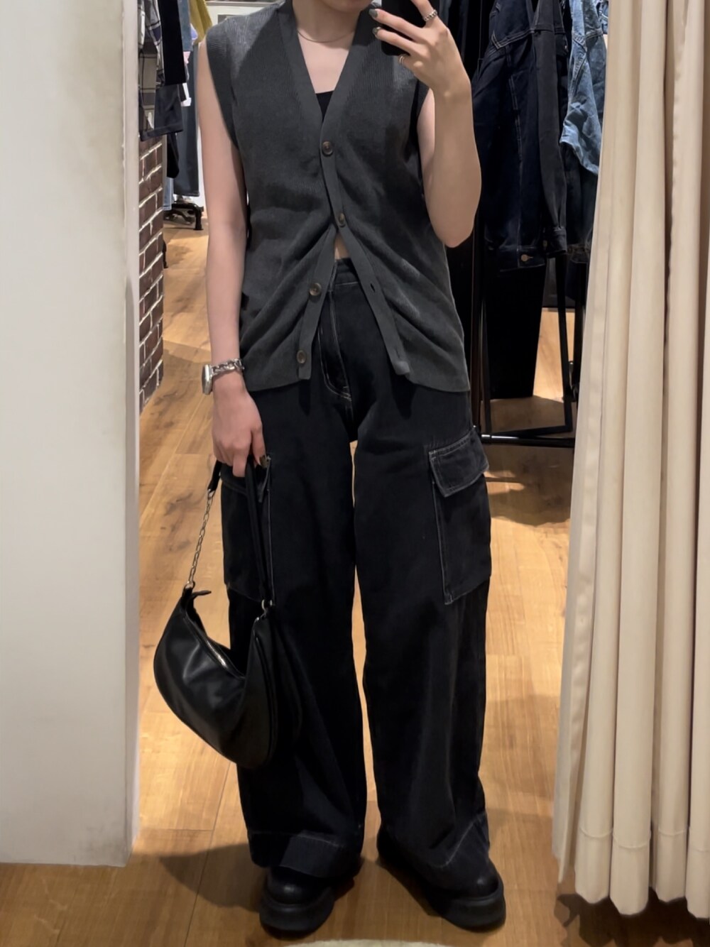多田詩音(Ungrid)のベスト「深Vニットルーズベスト」を使ったコーディネート