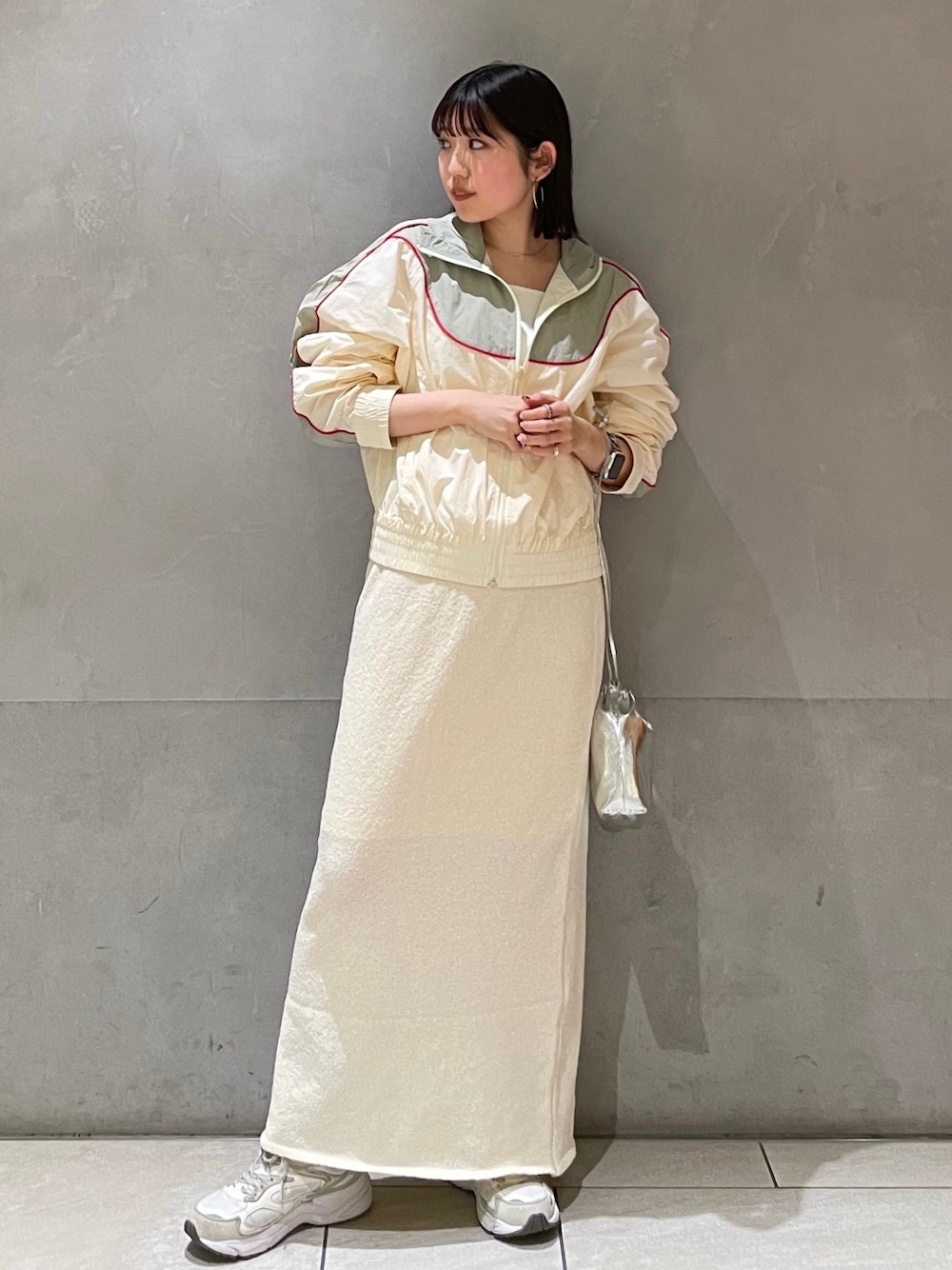 ワントーンコーデ🍼 《IG: @shion_tada_の投稿詳細》 【スカート】 ニットスカートなので、履き心地抜群です! 152センチでスニーカー合わせでも丈感大丈夫でした! またお尻のラインはあまり拾わないタイトスカートなので綺麗なシルエットで履けました! 裏地もあるので透け感も大丈夫🙆♀️ 【ブルゾン】 サラッとしていて着やすく、コーデにプラスするだけでトレンド感も出る優れもの! 配色も可愛い❤️ ネックを立ててきても、ねかせても可愛いので、その時のお好みで着れちゃいます! ※インナーとスニーカーは私物で、 バックはノベルティです。