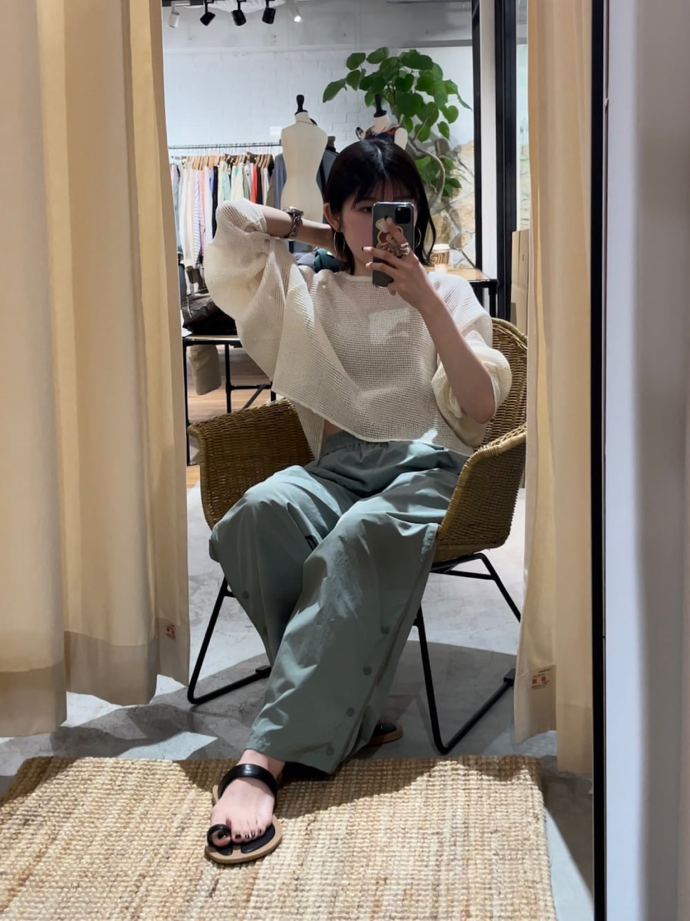 メッシュトップスコーデ☀️ 《IG: @shion_tada_のリール詳細》 【メッシュトップス】 冷房や日焼け対策にもバッチリなトップスです✨ 袖部分もたぽっとしてるシルエットが可愛いですよね🤎 二の腕もカバーしてくれます! 透け感も絶妙で、152センチで丈感はおへそくらいでした! 【パンツ】 ナイロンですが、シャカシャカしすぎてないので、キレイめカジュアルスタイルも楽しめる一枚。裾部分のボタンでシルエットの調節もできます! 152cmでフラットスニーカーだと地面につく長さです! 【インナー】 二色買いしました!華奢な紐のキャミ🪢 下着のラインが見えてしまうお洋服でも、これを着れば大丈夫◎✨ もってて損なしなパット付きキャミ! 【サンダル】 親指のところが固定されるようなおつくりですが、親指部分痒くならずに履けました!足幅広めの私でも安心でした😮💨